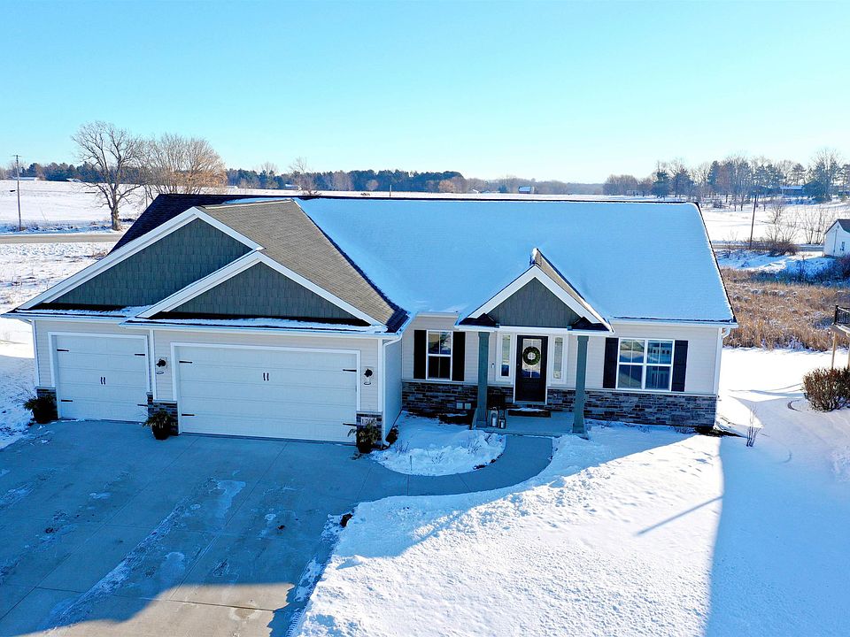 Prairie inspired Ranch home features chef's kitchen, open concept living spaces, and split bedroom layout. Kitchen includes large walk-in pantry, shaker cabinetry and tons of counter space. Dining area has 8 ft sliding doors to deck overlooking fenced in yard. Primary bedroom includes en-suite with walk-in shower, double vanity, and large walk-in closet. Across the living area are two other spacious bedrooms and full bath. Lower level features family room, full bath, and additional bedroom. Heated 3 car garage with lots of storage. Must see home!
