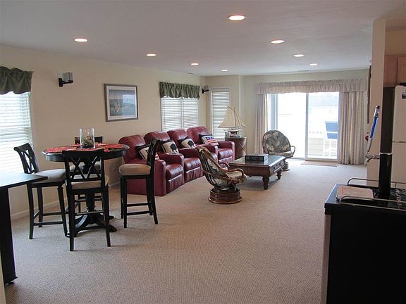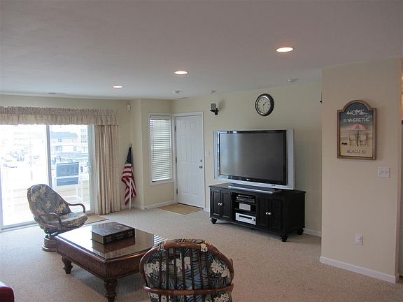 Quality summer living in a sparkling North Wildwood location just blocks to a pristine beach. Located on the top floor this spacious 4 bedroom, 3 bath condominium is furnished (less personal items) in a comfortable laid-back style perfect for uncrowded entertaining. A step-saver kitchen offers a large counter/breakfast bar with stool seating and an adjacent dining area for larger gatherings. The master bedroom has it's own private bath with tub, shower and tile flooring. There is plenty of storage in the enclosed 2 car garage with additional driveway parking for a 3rd vehicle plus ample storage in the enclosed garage. Enjoy the ocean views from the deck or from the sitting area in the enclosed octagon shaped patio-room at the entrance to the unit. You'll appreciate the privacy of no one living above you plus the convenience of having an elevator so no steps to climb with groceries.