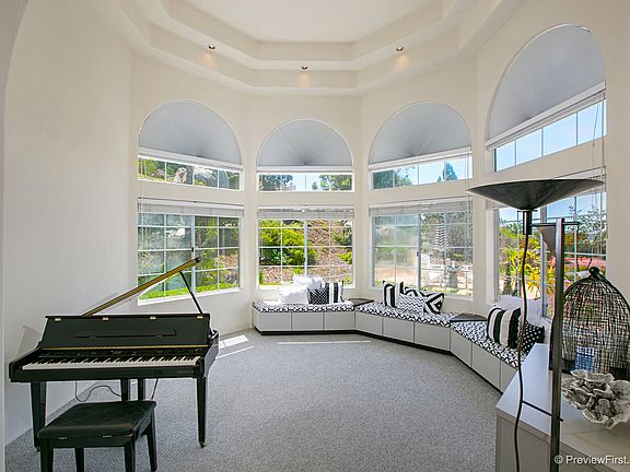 Enjoy Spectacular Panoramic Evening Lights & Mountain Views from This Light & Open 4 Bedroom, 3.5 Bath Home with High Vaulted Ceilings & Beautiful Windows that Add Lovely Light & Sophistication! Double Door Entry Leads to "Great Room" Area with Fireplace, Wet Bar and French Doors to Private View Balcony and A Stunning Living Room "Rotunda" with Beautiful Arched View Windows! Gorgeous Master Suite on Entry Level with Fireplace and Private View Balcony! This Beautiful Mediterranean Home is Ideal for Entertaining! A Long, Private Driveway Creates Additional Parking to the 3 Car Garage. A Beautiful, Light Kitchen with Informal Dining Area & Lots of Pantry/Cabinet Space is Adjacent to the Formal Dining Area. Professionally Landscaped Grounds with Tall Palms and Lawn Area as Well as Patios & Balconies Where You'll Enjoy the Opportunities to Take in the Powerful, Panoramic Views! Separate Laundry Room, Central Vacuum, Air Conditioning & Recessed Lighting Throughout.