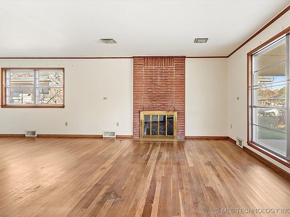 Darling home with so much potential! This 3-4 bedroom home with 3 full baths. So much opportunity to make this home yours. Great floorplan with oversized rooms. Big kitchen with newer appliances. There is a half basement that includes a full bath, utilities and room that could be second living, game or bedrooms. Peg hardwood floors are beautiful, Great location with amazing views of the Tulsa Country Club. Huge 3 car garage. Lot's of storage. Seller is selling As Is although how is in good condition.