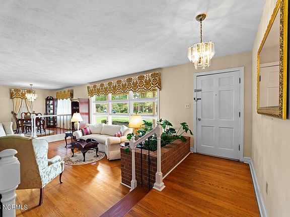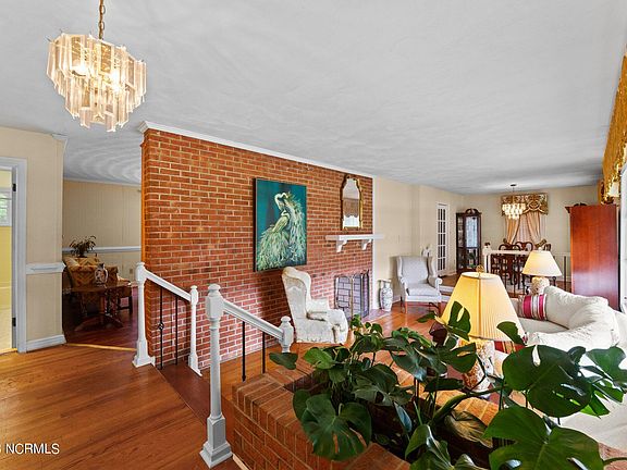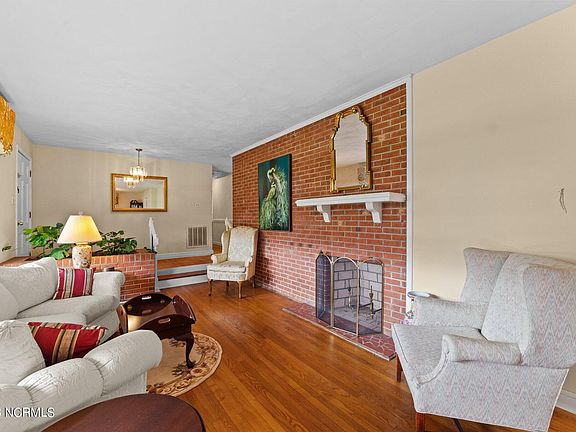 Spacious brick ranch! This 3-bed, 3-bath home begins with a large, dedicated entryway overlooking a beautiful formal living room with fireplace and formal dining area. You will love the very mid-century modern planter, sunken living room, wrought iron railings and large windows in the formal areas. You will also find a cozy kitchen with new cooktop and oven. Adjacent to the kitchen is a rear hall leading to a large laundry room and a few steps away to a second den, extra bedroom or bonus room. The main den has another beautiful brick fireplace. At the opposite end of the house is a huge primary bedroom which is large enough for desk, king size bed and sitting area. In this large bedroom, you will find 3 closets and full bath with a stand-up shower. There are 2 additional bedrooms, bright with natural light, as well as two additional full baths, one in the hall and one in the second den/bonus area. This is an ideal layout for both families and overnight guests. The yard is simply a peaceful oasis with a large flat lot and a patio accessed from the den. All appliances, including refrigerator, and washer/dryer remain.