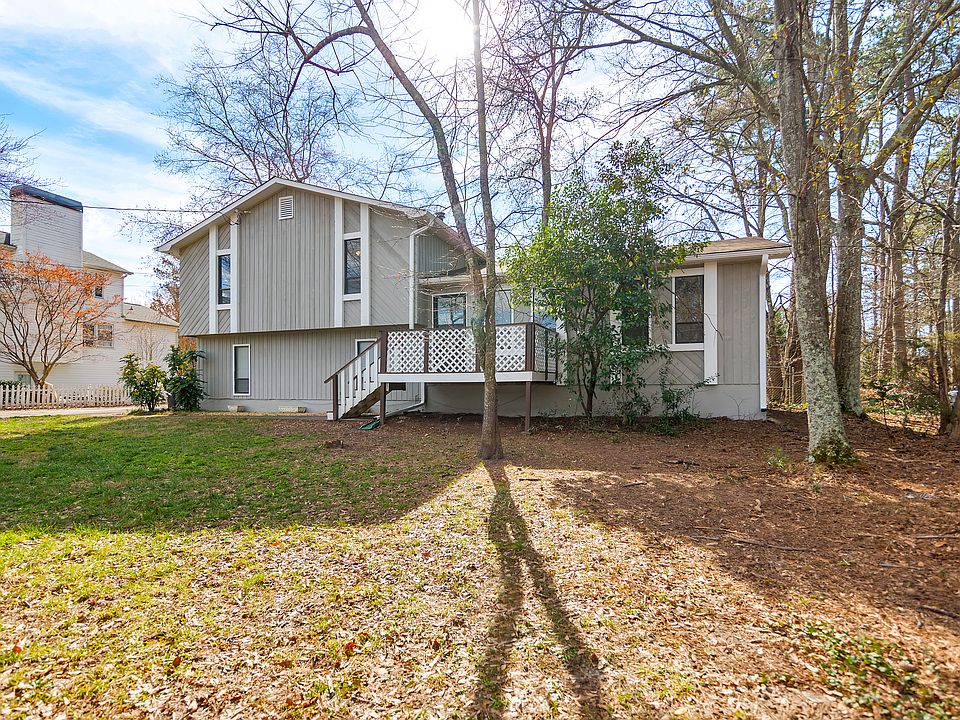 Wow! Beautiful 3 bed / 2 bath East Cobb contemporary with great location and great schools! NEW exterior paint for a fresh look! Spacious fireside living room with vaulted ceilings leads to a cozy kitchen with stained cabinetry and view to the backyard! 3 generous bedrooms up including the Master Suite! Don't miss the over sized laundry room in the partial basement! Level tree lined lot with inviting back deck will be perfect for outdoor entertaining this summer! Over-sized garage with smart MyQ garage door system! Convenient to I-75, I-575, shopping, dining and more! Don't miss out on this amazing opportunity!