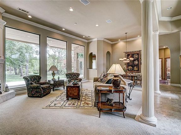 This gorgeous one-owner, custom home offers unparalleled craftsmanship and exceptional amenities. Truly remarkable design and a kitchen/family area that will take your breath away. Upon entering 2 large pillars greet you into the grand living/dining area with fireplace and outdoor views from the soaring windows. A wet bar caters to all areas. The kitchen/family room is clearly the heart of the home with a central island, breakfast eating area, huge snack bar, china cabinet with beveled glass doors, pull out drawers, double ovens, 6 burner Jenn-Aire cooktop, work space galore and open to the family room featuring a cozy fireplace and unique tray ceiling. The master suite is huge with 2 walk-in closets (one is cedar), fireplace, patio access, safe room, deluxe jetted tub, shower, dual sinks, skylight and tray ceiling. 2nd bedroom has a raised by window area w/tray ceiling. 3rd bedroom has high beamed ceiling and the 4th bedroom has a built-in desk. Cute she-shed and open patio.