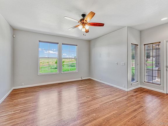 Pristine townhome, ideal location in Lewis Palmer School District 38! 1625 sq ft, 2BD;3B;2CAR with 2 large living spaces. LOW maintenance living and is move-in ready, ideal for those with an active lifestyle! Beautiful hardwood throughout the main level and on the stairs, 9 ceilings on the main level, central air conditioning and Front Range views. Enter from the covered porch to the great room and several windows providing abundant natural light. The kitchen provides ample counter and cabinet space and a counter barrefrigerator included! Adjacent to the kitchen is the laundry space with electric hook-ups and the half bath with a window. At the top of the wood stairs is the light and bright family room. This space could be easily converted to a 3rd bedroom. The master bedroom features a vaulted ceiling, ceiling fan and adjoining full bath with a double vanity and walk-in closet. The 2nd bedroom, also upstairs, also features an adjoining full bath and walk-in closet. Perfectly located with access to Colorado Springs, Denver & Monument! I-25, schools, shopping, dining and several wonderful outdoor activities are just minutes away.