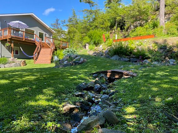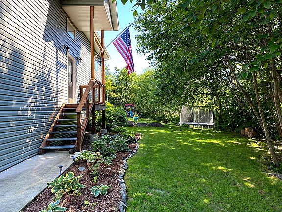 Discover the allure of this meticulously updated, 5-Star Energy Rated split-level residence nestled in the picturesque Lena Point. This expansive 2,200 sq ft abode embraces an open floor plan, featuring 3 spacious bedrooms and 2.5 bathrooms. Ascend to the upper level, where a captivating great room seamlessly integrates the kitchen, dining area, and living room—a sprawling space designed for seamless entertainment. Four sizable windows adorn this space, offering delightful views of the backyard and bathing the interior in natural light. The kitchen boasts modern stainless steel smart appliances, a breakfast bar, Kraftmaid cabinets, floating shelves, a deep sink, and sleek solid surface countertops. Step onto the generous 425 sq ft deck from the great room, a perfect setting for family dinners amid the tranquility of the secluded back. Journey toward the master's suite, passing a thoughtfully equipped laundry room and a guest-ready powder room with ample storage. The upper level culminates in the master bedroom, featuring a substantial walk-in closet and an ensuite bathroom adorned with a jetted tub, a full-size walk-in shower, tile surround, and dual sinks. Descend the hardwood staircase, passing through the remodeled front entryway, to the lower level. Here, two carpeted bedrooms, linen closets, and a full-size bathroom await, along with access to a 710 sq ft heated, two-car garage—a versatile space catering to vehicle storage or creative pursuits. Outdoors, the residence boasts an expansive driveway for boats, RVs, and multiple cars. A sizable storage shed beckons for yard tools, while the beautifully landscaped yard features a tree-lined border and vibrant floral gardens. Berry bushes, including blueberry, red huckleberry, currents, and raspberry, adorn the yard, accompanied by a charming strawberry box. A natural spring-fed stream meanders through the middle, crossed by a mini bridge leading to a delightful playset for endless children's entertainment. Finally, a raised stone patio with space for outdoor seating and a fire pit completes this enchanting haven for making cherished memories with family and friends. Explore the extraordinary possibilities hidden within this Lena Point gem.
