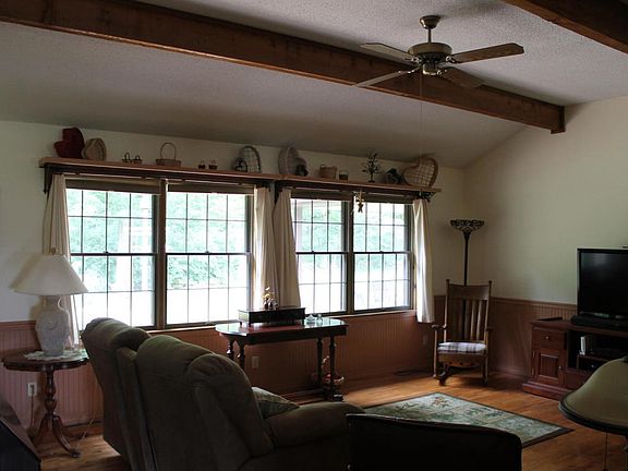 All-season lakeview from great value Sac Valley Estates home on double lot; short walk to boat ramp; exterior siding replaced with Hardiplank 2007; rear covered patio added 2013; backs on Corps land for privacy; mature landscaping; 4 bed, 3 bath; 2 master suites with full baths and walk-in closets; hardwood floors LR, kitchen and halls; ceramic tile sunroom; wood-burning fireplace LR; main floor laundry; full unfinished basement with egress window and walk-out oversized 2-car garage; attic fan; reverse osmosis water filtration and Culligan softener; heat pump replaced 2014; high efficiency furnace replaced 2007; 12 x 12 shed with additional 8 ft covered pad; appliances and office furniture included; Enjoy a peaceful and well-maintained home in friendly neighborhood.