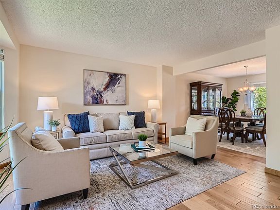 Welcome to this beautiful move-in ready 4 bedroom/3 bath home in the coveted Clarke Farms neighborhood! Step inside to find beautiful hardwood flooring on the main floor with a floor plan that flows seamlessly throughout. This home has a formal living room and separate formal dining room, which opens conveniently into the updated kitchen. The updated kitchen has ample storage with painted white kitchen cabinets, Corian countertops, an eat-in breakfast nook, and a new black stainless steel refrigerator. Off of the kitchen you will find a cozy family room, complete with a gas fireplace to enjoy during our Colorado winter months. Also on the main floor is an office and half bath. Upstairs you will find an oversize primary bedroom with walk-in closet, and en suite 5 piece bathroom. 3 additional bedrooms and a full bathroom are also upstairs along with a reading loft area and built-in bookshelves. Large Unfinished basement is ready for you to finish to your liking! In the backyard, you will find a beautiful patio the full length of the home with a retractable awning for shade, window well covers, garden, and professional landscaping. The attached 2 car garage is big enough to hold all of your toys and cars, and the 2 plastic shed-like containers in the backyard come with the home for extra storage. UPDATES INCLUDE: BRAND NEW Roof (impact-resistant) and Exterior Paint, Furnace (2020), Hot Water Heater (2021), Refrigerator (2020), hardwood flooring throughout main floor, Ring doorbell, and ADT security system. Clarke Farms is a very well-known community close to top-rated Douglas County schools, parks, trails, shopping, restaurants, & more. You won't want to miss this one!
