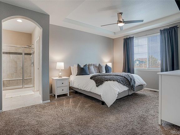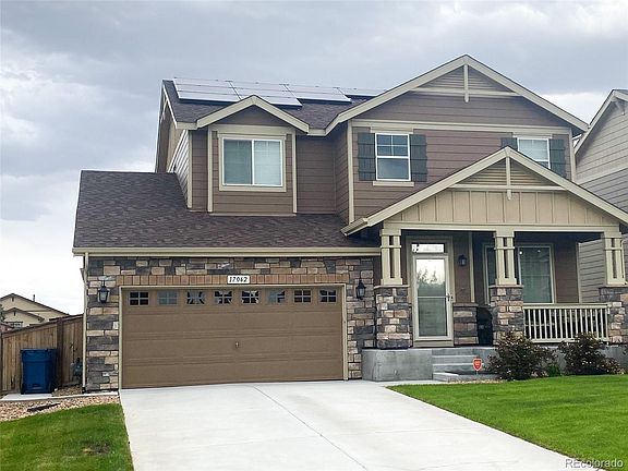 Enjoy this beautiful well cared for home that features a rare main floor master bedroom with an incredible dreamy California closet. The gourmet kitchen features all stainless steel appliances, granite counter tops, a pantry, crown molding, a Smart refrigerator with a camera to make shopping easier for you as well as a kitchen island. The main floor also has a private study/office. Upstairs has a loft and 3 more large bedrooms and one them is a suite. The backyard has wonderful patio to relax and BBQ on. It is a short walk to neighborhood parks, King Soopers, other shopping and restaurants and the newly added onto Children's Hospital and Top Golf. The solar will save you money on your utility bills and Seller is willing to pay for the entire the loan off of $29K!