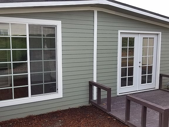 This home is in a manufactured home park and the owner will pay space rent because they will not own the land beneath their home. BETTER THAN NEW! MUCH BETTER THAN NEW! This home is one of a kind. It is located in a top west side, senior park. The renovations and improvements are almost endless. The kitchen, dining area and living room are open and part of an attractive Irvine style. With all of these rooms open to each other, the home is fabulously spacious, especially with the nice laminate and tile floors. The kitchen cabinets and drawers are new and high end. The drawers self-close when pushed appropriately. The windows throughout the house are brand new, larger and nicely trimmed on the inside and outside. These large windows allow plenty of natural light throughout the entire house. The whole house has a spacious, bright feel to it. The floors also have wood baseboards. The kitchen area has new tile flooring while the rest of the house has thick, high end laminate flooring. The walls are textured throughout. The kitchen has a large island with a granite counter top. The other counters in the kitchen are also the same nice granite. The kitchen island has a new, gas stove with an attractive range hood extending down from the ceiling. The dining area has french doors opening onto a new deck surrounded by mature shrubbery. Also, there is recessed lighting throughout the house. These lights add to the bright, open feel that the large, new windows also give. This home is 1344 square feet and it has three large bedrooms, one of which is being used as an office. The office is magnificent and it also is bright and cheery, with the laminate floors, textured walls, large windows and recessed lighting. The huge master bedroom has two large closets, and his and her, high end sinks off towards the master bathroom. The second bathroom has a very large, tiled step in shower with modern, glass sliding doors. The shower head is high end and large. The sink is modern and elegant. The flooring in both bathrooms is new. The master bathroom has a new tub and shower combination. This home features a newer heat pump and newer gas furnace to economically cool and heat the house. The newer hot water heater is gas. The house is sided with new hardiplank siding that does not easily rot. The front door is new and has tasteful stained glass. The carport can accommodate about 5 cars. The trim work around the exterior of this house is exquisite. Because of the superior materials, workmanship, and interior design, a new manufactured house cannot compare with this home. This home is head and shoulders above your average, brand new, manufactured house. It compares favorably to higher end real estate, except it is one fourth the price. Call 971-506-0570.
