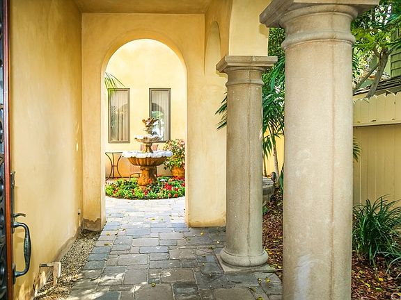 This is the one you've been waiting for, TURNKEY. Luxury abounds in this WATERFRONT TUSCAN style home featuring 50 feet of water frontage, private concrete with trex side-tie boat dock, private courtyard & fountain. This unique home offers 4 bedroom (1 main floor bedroom) and Office, 4 ½ bathrooms. Enter from the lovely courtyard into the formal living room, formal dining room. Circular staircase featuring exquisite iron railing & new designer carpet on stairs. First level flooring is exquisite Jerusalem Gold Limestone. Gourmet kitchen features a large granite island with state of the art stainless steel appliances, built in refrigerator, Professional Thermador 6 burner and griddle gas stove. Butler's pantry, wine refrigerator. Informal eating area off the kitchen w/views of harbour. Family room features bi-folding doors overlooking the harbour. Upstairs offers a Theater room,master suite, separate sitting area w/two sided fireplace, balconies. Custom glass sliding door created by Laguna Beach artist, jacuzzi tub in master bathrm, walk in shower. Built in cabinets and desks, distressed maple flooring, & convenient laundry room, Enjoy incredible sunsets from the patio, has motorized awnings (Southern Exposure). 3 car garage w/customized built in cabinets. Security alarm/camera system, dual AC, central vacuum, tankless water heater, water softener. Waterfront is a wonderful lifestyle, its peaceful and serene. This is an exceptional home and neighborhood.