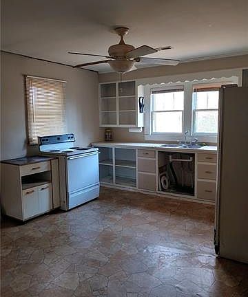 Lil' Country FarmHouse on 1.84 Acres w/ 4 Outbuildings (2-have Electrical) Roll Your Sleeves Up DIY & Keep It or Flip It-Live here while you renovate-Home has been used as a rental for many years-Seller wishes to Sell As-Is. Has newer HVAC unit aprox 7 yrs old, Very Large Kitchen & Living Rm(closet is in Living Rm & this Rm was uses as Master Bedrm) Fireplace in Front Rm & it has a wood burning stove,Home Has A Large Bathrm & was updated with new tub surround, toilet & sink w/ cabinet-Carpet and Flooring was replaced also- all work was done aprox 7 yrs ago per the seller. No Septic Records or Permits On File.Work is needed & list price is based accordingly on this classic farmhouse but there are so many possibilities to make this your cute little cottage farmhouse in the county.
