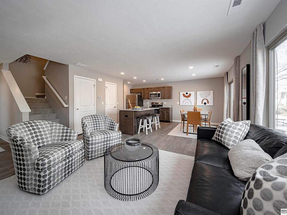 The Townhomes of Village Pointe by OMAHA EASY LIVING. Affordable living with high end finishes. 2 story townhome. ALL appliances including WASHER/DRYER, FRIDGE. Open living/dining/kitchen with large pantry. 3 bedrooms, laundry and storage upstairs. LVT throughout main & low profile designer carpet up. Agent has equity. Monthly HOA fee of $110 incl. lawn, snow, trash. INVESTOR & AIRBNB FRIENDLY!