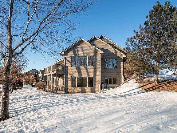 1-level townhome in demand Rock Island neighborhood. 55+ community located near parks, trails, restaurants, shopping, and easy access to freeways. The serene setting provides privacy, viewing of wildlife including Deer that backs to Orchard Lake Preserve. The main level has new carpet, fresh paint, natural light, Solid wood flooring, open kitchen with eat-in area with access to the private deck and a double-sided fireplace, formal dining room, and spacious living room. The office/den space has a large window for plenty of light and has access to the ELEVATOR that provides access to the lower level. The oversized Master bedroom has a private bath with accessible shower, tile flooring, built-in linen closet and large walk-in closet. The walkout lower level boasts a large family room w/fireplace, Rec/gaming area, 3rd bed with walk-in closet, a full bath and access to a large storage area.