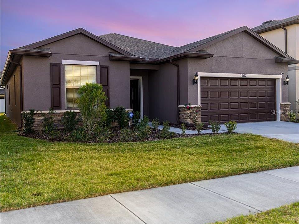 What more could you ask for with this gorgeous open floor plan with nearly 2200 square feet of living space, 3 bedrooms, 2 bathroom, with a den/flex room, built in 2017, located in the gated community of Bayridge and NO CDD. Care free Florida living, in a private gated community. The HOA amenities include lawn and landscape service, lawn sprinklers and maintenance. Use all that extra time to relax at the community pool, or enjoy the park and walking trail. From the granite counter tops in the kitchen with a large island to the extended garage, laundry room with sink and cabinets, and large backyard space, this home has it all. Five speaker built in surround sound with Polk Audio speakers and is pre-wired for speakers on the patio, TV mounts, hybrid hot water heater, in-wall pest control system. Nearly seven years of builders structural warranty remaining. Don't let this opportunity get away.