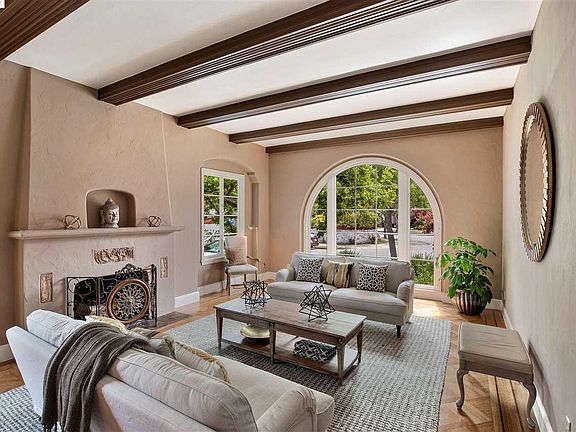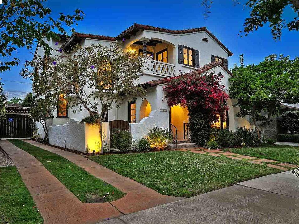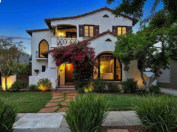 Stately Spanish revival near Edison School. Grand rooms, high ceilings, sumptuous architectural detail.Inlaid hardwood, arched windows, wrought iron, beamed ceilings. Sunny kitchen & charming breakfast nook overlook private back yard with spa. Master suite, cool Art Deco bathrooms. Simply gorgeous!