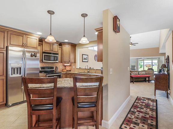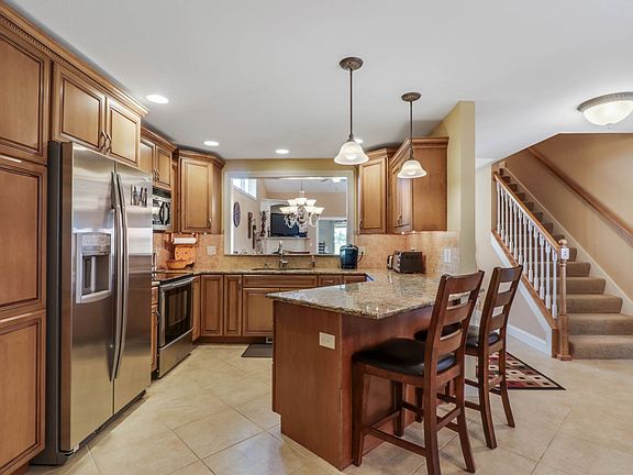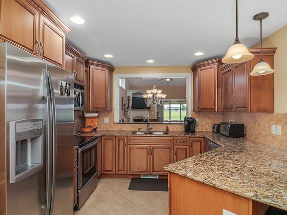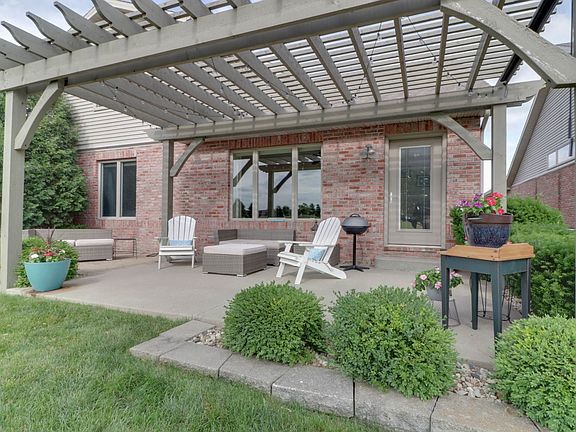 This home has it all, See the sunset on your pergola covered patio overlooking the golf course and pond. This 3 bedroom, 4 full bath home has many upgrades, including custom kitchen cabinetry, granite countertops, beautiful tile-work, custom lighting, built-ins, 3 walk-in tiled showers (one bath with heated flooring). 2 Bedrooms on main level. 3 Bedrooms and 3 Baths have been recently painted. A large master suite with walk-in closet and a gorgeous spa like master bathroom. 3rd Bedroom Guest Suite on the second floor. Finished basement with egress and another beautifully done full bath. Basement also has a generous 18 x 32 room with storage shelving and another finished room with a large closet which could be used as a 4th bedroom. Heated garage with built-in cabinets and countertop. Access to a community clubhouse with pool, exercise equipment, showers and sauna. T.V. in Kitchen stays.