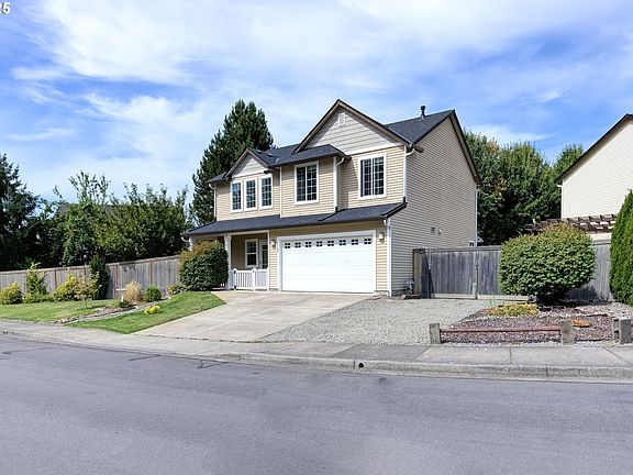 RENOVATED HOME NEAR THE PARK. 3 bedrooms, 2 1/2 bathrooms, 2130 sqft, built in 2006 on a large 8441 sqft lot. New roof in 2023. New flooring throughout w/ LVP on the main floor & high end carpeting upstairs. Two story entry w/ open area. Kitchen has been completely redone w/ huge island, pantry w/ pullout drawers, quartz counters, coffee bar & stainless appliances that opens to the dining area & great room w/ gas fireplace. Vaulted primary bedroom upstairs w/ walk-in closet, built-ins, soaking tub & glass shower. Huge second bedroom & 3rd bedroom upstairs w/ laundry room. Gas forced air heat & AC. Large front porch. Covered composite deck in back that overlooks the large fenced yard w/ play structure & storage sheds. Gated RV parking. Excellent La Center neighborhood, just a short distance to community parks, walking trails, nature preserve, library & schools.
