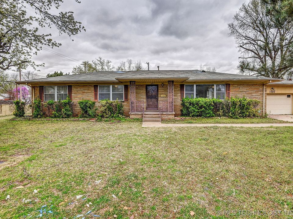 Stone exterior on this beautiful Brookside ranch. Nice corner lot w/oversized yard. Ready to make your own. Three Bedrooms, 2 full Baths w/2 Living areas. Good floor plan w/interior utilities with 2-car Garage on cul-de-sac. Close to Brookside shopping and dining.