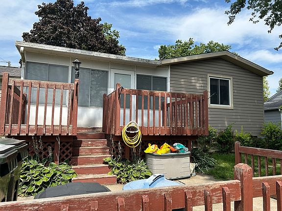 New sump pump, Lenhart Plumbing satisfactory camera sewer line inspection, new basement toilet and upstairs trap. Dining room table set stays, all appliances; stove, refrigerator, microwave, washer, dryer, hot tub, garage heater are not warranted. Mower and two ladders will stay. Heater for insulated attached garage is in the basement. Basement has a water system. Freezer in basement will stay. 10 x 14 shed, 15 x 11 patio and 15 x 8 deck, lot has alley access