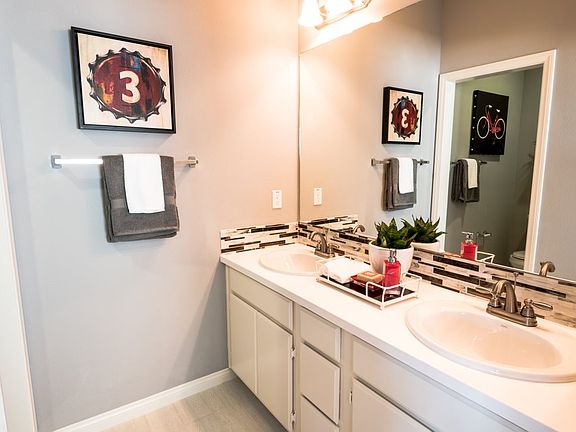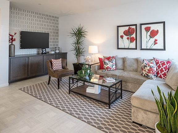 Lovina Residence 1X features a 3-story paired home at 2,189 square feet, 3.5 baths, 4-5 bedrooms and a 2 car garage.. This home includes: - Upgraded Kitchen & Master Bath Cabinets- Beech Standard Style Door with Upgraded Prairie Grey Stain, Standard Hinges, No Knobs- Upgraded Kitchen: 2 Bin Recycle Drawer- Standard Cabinets: Bath #2 & Bath #3, and any Linen: White painted with standard hinges- Kitchen Counter: Standard Sunset Gold w/ 6" back splash & bullnose edge detail- Master Bath Counter Top: Silver Cult Marble w/ 4" splash & bullnose edge detail- Sinks/Faucets: All Standard- Floor Covering: Entry Standard 12 x 12 Tile & Standard Vinyl: Kitchen & Baths, No Carpet