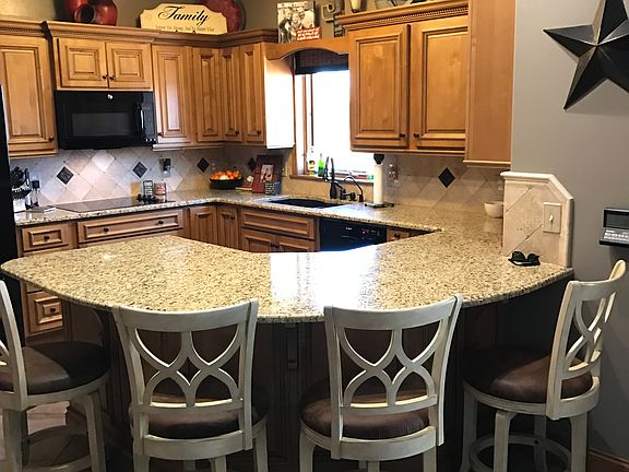 Exquisite family home overlooking golf course hole #12. This story and a half property with 6 bedrooms and 4 1/2 baths is perfect for a growing family and has a large walk out basement family/rec area made for entertaining! Master suite on main floor including heated bathroom floors. Kitchen features granite countertops double oven and large pantry. Laundry hookups on main level and upgraded large laundry room in basement. Plenty of storage, including workshop off garage and storage shed/golf cart garage on backside of house.. Backyard includes access to recreational fishing pond. Playhouse & playset stay with home.
