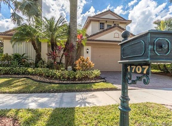 Waterfront & pool 2-Story Monterey model with fabulous view! 6 full bedrooms w/closets, 3.5 bathrooms. Master bedroom on main level w/upgraded adjoining bath. Tiled & laminated floors throughout, formal dining room. Archhitectural design throughout, powder room, eat-in kitchen w/42” raised panel cabinets, granite countertops & backsplash & family room w/sliding doors to pool. 2 large bedrooms on 2nd level w/full bath. Separate laundry room, 2 A/C units, accordion shutters & pavered driveway.