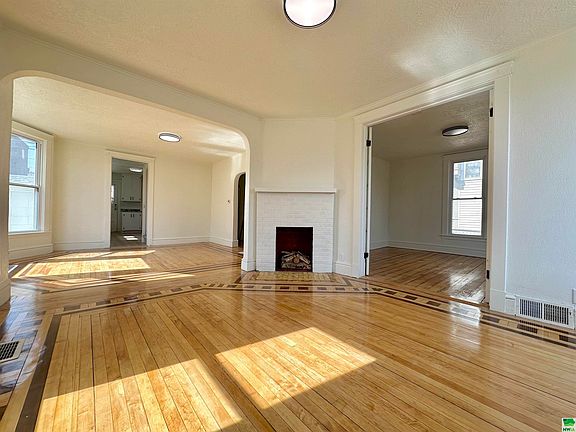 This charming bungalow features an open, functional layout. The living room has a cozy wood-burning fireplace and flows into the formal dining area with beautifully restored wood floors. Down the hall are three spacious main floor bedrooms with generous closets and large windows. The fully renovated main bathroom includes modern white tile, a new tub, toilet, and vanity. The kitchen offers convenience with easy access to the driveway and features a new white backsplash, updated flooring, and sleek countertops. Upstairs the finished attic includes two additional bedrooms and a full bathroom. The basement has its own separate entry and offers even more living space with a kitchenette area, a 3/4 bathroom, and a large living room with new carpet and fresh paint.