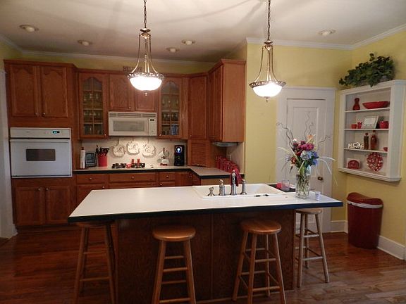 All new granite coutertops, new stainless steel backsplash, new under-counter mounted stainless steel sink, new paint in several rooms, hardwood floors, and new bead board in the hallway. Custom vanities in both downstairs bathrooms. Approximately 20'x25' family room with hardwood floors. Remote control gas logs in the living room and wood stove in the family room. - Gotta see to believe - bigger than it looks from the outside. Immaculate, remodeled cottage style home on quiet street in the heart of Comer. 3 large bedrooms on the main level and 2 bonus rooms upstairs. Owner added insulation and on budget bill, the electricity bill averages $85/month and the gas bill runs approx. $65/month!!! Master bedroom with beautifully, remodeled master bath along with second full bath on the main level that has also been remodeled. Upstairs the two bonus rooms were used as bedrooms. Could be used as a great teen suite as it has a full bath and storage. There is also a cook's house outside that is heated that would make a great man cave, workout room or playhouse. Yard is fenced in and there is a great deck with a gas grill that stays! Beautiful rocking chair front porch. Hardwood floors in great room and kitchen.