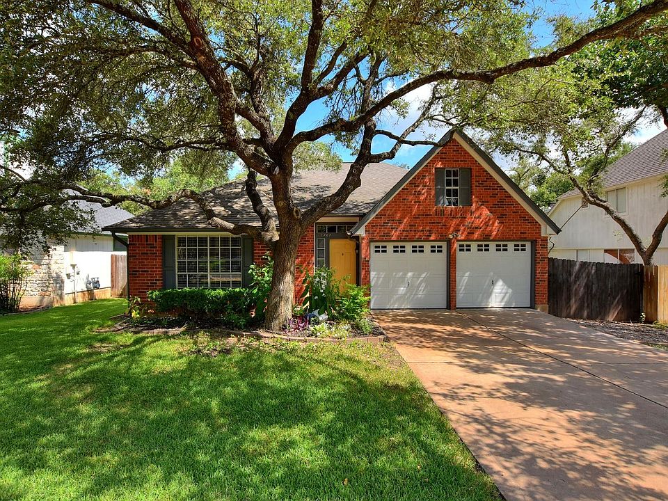 Recent upgrades including new marble kitchen backsplash and quartz counter tops, painted cabinets, stainless appliances, hardware, fresh paint, carpet and new W/D. Lovely curb appeal and inviting back yard with covered patio, mature trees, gardening beds and storage shed. Large master bedroom with en-suite bath. Two two additional bedrooms and one full bath to this open concept layout. TV mounts in master and living room. Appliances included. Huge bench in the garage for projects and more storage. Enjoy close proximity to shopping, dining, and parks. Zoned to highly acclaimed Leander schools. No Smoking. One small dog. Contact agent for minimum qualifications.
