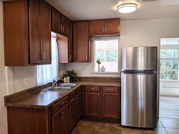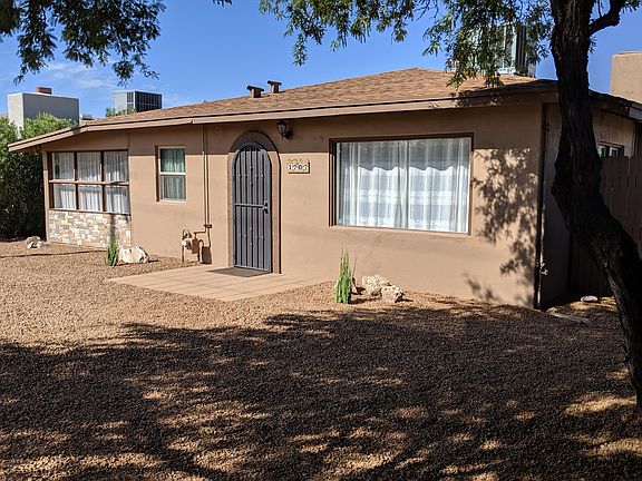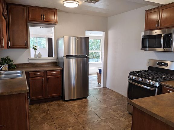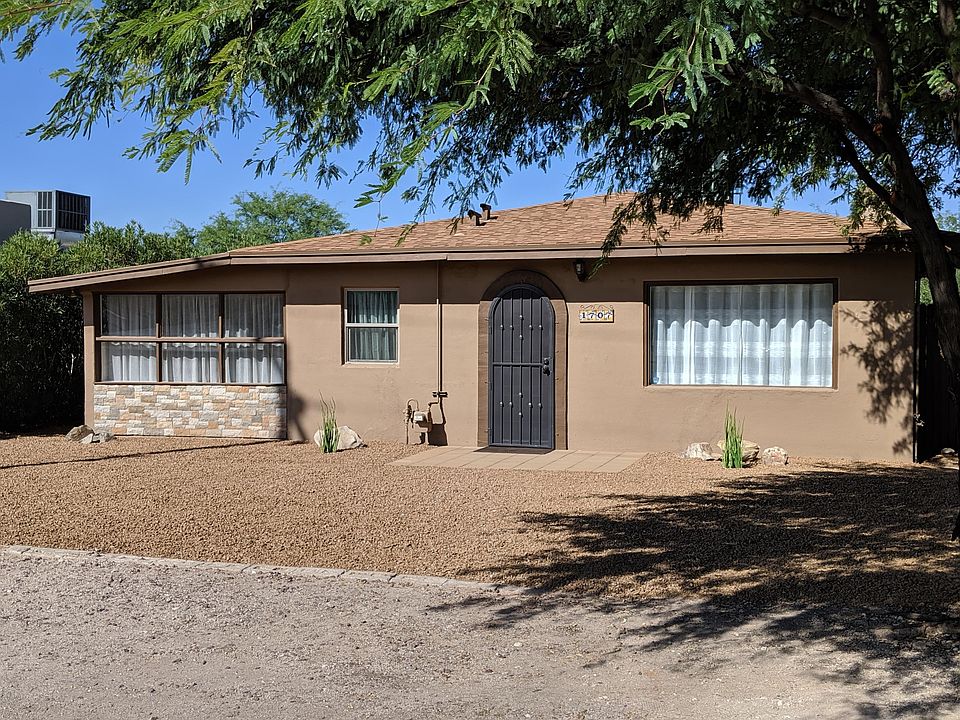 Move in ready. Updated, Clean, 3B/1B w/in 1 mi of UA. Open concept kitchen/living space great for gathering around the bkfst bar or entertain in the large back yard w/paver patio and fire-pit. Attractive kitchen w/42'' upper cabs, satin nickel pulls, new stainless steel refrig. w/ice maker, 5-burner self clean gas range and over-the-range microwave. Great room w/fireplace. Bath w/tiled walk-in shower. Laundry room w/extra storage washer and gas dryer incl. Central HVAC, ceiling fans, programmable thermostat, LED Lights, dual pain windows(some) Energy Star gas water heater. Low flow plumbing fixtures. No Carpet! Durable ceramic and laminate throughout. Low maint front and back yard. Off-street parking, no permit required for on-street parking. Secured bike rack. Owner/Agent