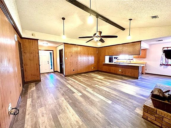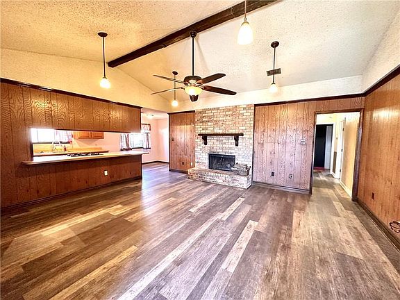 3bed 2bath raised Home Covered patio 1 car garage 1 year-old roof, new floors no carpet newly renovated primary bath ample storage Walk-in closet main bed 2 closets other beds attic storage Kitchen W/dishwasher disposal built in gas oven cook top multiuse living/dining room Separate Den/Family W/Fireplace vaulted ceilings Exterior doors,front windows replaced 2021 Roll-down storm shutters garage W/built-in work bench &storage Laundry W/utility sink Plenty of parking schools restaurants shopping all nearby