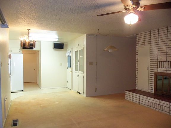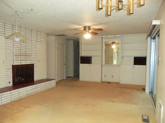This home is your classic 1960's custom built, high end home with brick exterior, two living areas, and large rooms throughout. The utility room is huge with storage cabinets, pantry, space for a second refrigerator and freezer, and a half bath. A dual opening fireplace provides gas heat to the living room and family room. The family room has a wall of built in cabinets and shelves and opens out to the covered patio and privacy fenced back yard with sprinkler system and built in BBQ grill with natural gas. Beyond the private back yard fence is more land with electric, trees, and possible access for an RV. Master bedroom is huge and other two bedrooms are large. Well maintained and great location for a home/business - a lot here for the price!