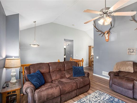 Welcome to your new home in the sought-after Harbor Lake community! This updated split-entry offers style and comfort at every turn. The main level showcases durable vinyl plank flooring throughout, leading you to a spacious living room complete with a cozy wood-burning fireplace and vaulted ceilings. The kitchen and dining area is ideal for entertaining, featuring ample cabinet space, a walk-in corner pantry, and stainless steel appliances.