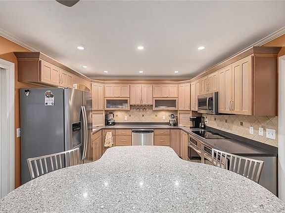 Two fireplacesPrivate tree-lined backyardCovered composite deckDreamy backyardMassive granite islandUpdated kitchenStainless steel appliances
