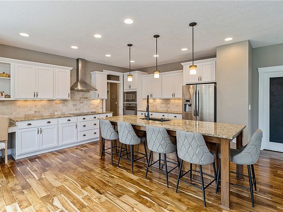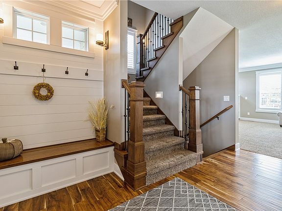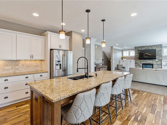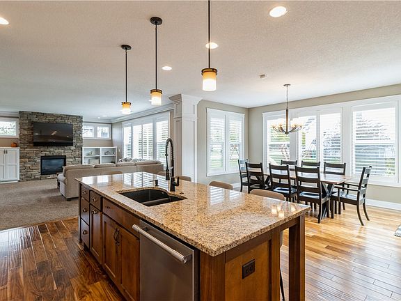 Take a look at this impeccably maintained custom two-story home in Woodlands Ridge, just a block away from Campbell Park! Situated on a large .418 acre lot, with mature landscaping, you'll enjoy plenty of space to play, hang out on the stone patio or around the built-in fire pit. Inside you're greeted by a light-filled and open main living space with a large family room, which includes a gas fireplace surrounded by stonework, built-ins, and huge windows with plantation shutters. There's room for everyone in the spacious kitchen that offers a large island, ample counter space and cabinetry, stainless steel appliances, a walk-in pantry and a generously sized bump-out to accommodate a large dining table. Work from home? Enjoy a great office space with built-in desk and shelving just off the foyer. The powder room and mudroom round out the main level. Upstairs you'll find the primary suite with a large bathroom and closet, two bedrooms that share a Jack & Jill bathroom, a fourth bedroom, hall bathroom and generously sized laundry room with ample cabinetry and counter space. The finished lower level offers an additional family room, fifth bedroom and bathroom. You'll appreciate the zoned heating and cooling on all three levels of the home and the energy efficiency of a geothermal system. Additional features include plantation shutters, a shed, trench drain in the garage, natural gas outlet in the garage if you'd like to install a heater, and irrigation. Schedule a showing today!