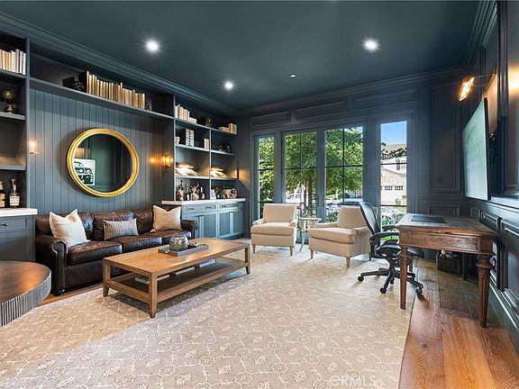 1707 Newport Hills Dr was completely rebuilt to the studs in 2023 with no expense spared. Designed with top-of-the-line finishes, high-end systems, and exquisite millwork, this home defines aspirational living. Custom woodworking, a stunning staircase, and herringbone wood floors warm and elevate the interiors. Just off the foyer, a moody lounge sets the stage for cocktails, game nights, or intimate gatherings. The expansive great room features a tufted leather banquette, custom buffet, and oversized trifold doors that blur indoor/outdoor living. The showpiece kitchen boasts striking porcelain countertops, a La Cornue 6-burner oven and range, oversized island with breakfast bar, and thoughtful details including exposed brick, timeless tilework, brushed brass hardware, and custom drying racks. A butler’s pantry and back kitchen offer double ovens, a coffee bar, full-size refrigerator/freezer, and extensive storage. The first level also includes an oversized mudroom, full bath, and versatile bonus room. Upstairs, four spacious bedrooms each feature ensuite baths, walk-in closets, and automated window coverings. The primary retreat offers bay-window banquette seating, a Calacatta Gold marble bath with soaking tub, dual vanities, heated floors, and oversized walk-in closet. A large loft captures sunset views over Harbor View Nature Park and overlooks the pool. A beautifully designed laundry room with dual washer/dryers, steamer console, and cabinetry completes the second story. The backyard is an entertainer’s dream with 430 sq. ft. of covered living space, full outdoor dining and lounge with fireplace, saltwater pool and spa, outdoor TV and speakers, and raised sundeck—all framed by serene park views. Blending timeless European elegance with modern California coastal living, 1707 Newport Hills Dr is more than a home—it’s a lifestyle.