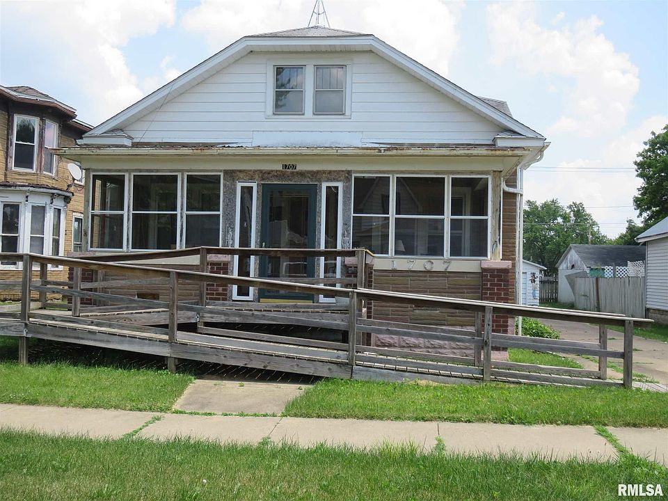 2 Bedroom house in the north end, features Curtis Woodwork, a 3 season porch, walk in closet, lots of storage with built in dresser, many closets, laundry hookups on the main level and also in the basement. Full basement features lots of storage, storm seller, bar, built in cabinets, a fake fireplace not used, sump pump and floor drain. New hot water heater in 2019, Furnace is a newer Goodman furnace, newer electric panel. Yard is partially fenced, nice backyard, with a 2 car detached garage with cabinets, workbenches, and shelves. Home also has a huge 37' x 27' attic that could be finished into a great room, or a 3rd bedroom. French doors from dining room are in the attic also. Property sold As Is.