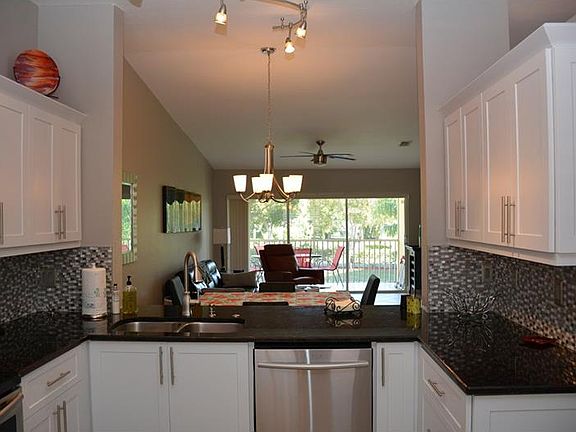 WOW! Completely remodeled and fully furnished condo offering 2 bedrooms, 2 bathrooms, screened porch and covered parking. Upgrades include new flooring, new kitchen w/ stainless steel appliances, new bathrooms including glass shower doors and high end tile. Enjoy extra sunlight and water views from this end unit condo located in the desirable Crown Pointe Community, just a few short miles from the beaches of Naples. Vaulted ceilings, crown molding, mirrored wardrobe doors, and modern lighting accents make this condo move in ready. Luxury furnishings are included too, so all you need to bring is your suitcase with clothes! Access to 2 Swimming Pools, Club House w/ many scheduled activities, Fishing Pier, Tennis Courts, Fitness center and more are included in the low community fees. Come enjoy this Maintenance Free lifestyle at an amazing value. Don't miss out!