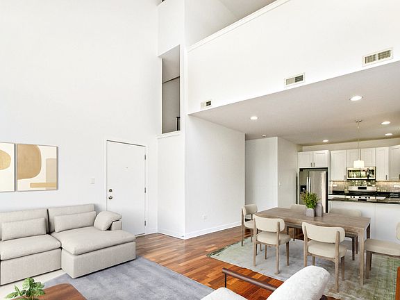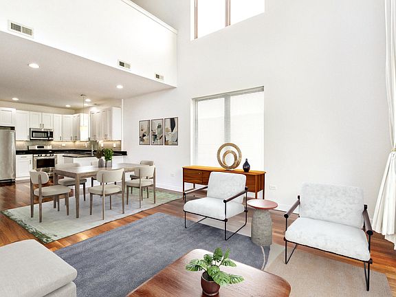 Luxuriously updated and modern 3 bed, 2 bath duplex penthouse with private rooftop deck, located in the heart of vibrant Pilsen! Step inside to find three spacious bedrooms plus a large lofted den, perfect for a home office or second living area. Recently rehabbed, the unit features a sleek white shaker kitchen with granite countertops and stainless steel appliance. The open kitchen flows seamlessly into the living - dining space, ideal for entertaining, with soaring, light filled two story windows. Spacious bedrooms with custom built-in closets, refinished cherry hardwood floors throughout, beautiful bathrooms, and in unit washer/ drier complete the luxury experience. Enjoy stunning, picturesque skyline views from your private rooftop deck, perfect for relaxing or hosting friends. Conveniently located with easy access to highways and just a short walk to public transportation. Live in the heart of Pilsen, surrounded by exciting restaurants, bars, nightlife, and cozy coffee spots.