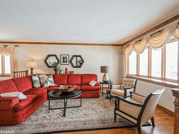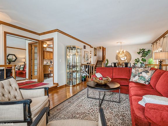 Welcome to this spacious all-brick, 3-bedroom, 2-bathroom bi-level home that offers a finished sub-basement and a generously-sized, attached 2-car garage. Perfectly located in a sought-after neighborhood with award-winning Park Ridge Schools, this home is just moments from parks, shopping, transportation, and highways, offering both convenience and tranquility. As you step inside, you're greeted by a large, inviting step-down living room featuring gleaming hardwood floors, elegant crown moldings, and a stunning bow window that fills the room with natural light. A separate formal dining room with a beautiful chandelier provides the ideal space for entertaining. The spacious kitchen boasts rich oak cabinetry, Corian countertops, a moveable island, and a skylight, creating a bright and airy atmosphere. Step through the exterior door and enjoy the covered patio, perfect for relaxing or hosting a barbecue. Upstairs, you'll find three generously-sized bedrooms. The primary bedroom features a full wall of floor-to-ceiling closets and an alcove that could easily be converted into an en-suite bath. The lower-level family room is a true highlight, complete with a gas fireplace, built-in cabinets, and a dedicated entertainment area. Sliding doors lead to the beautifully landscaped, fenced-in yard, providing a serene outdoor retreat. Additionally, there's a finished sub-basement with a laundry room, rec room, and utility room, offering ample storage and versatility. This wonderful family home has plenty of storage throughout, making it perfect for a growing family. A perfect blend of comfort, style, and functionality in an unbeatable location!