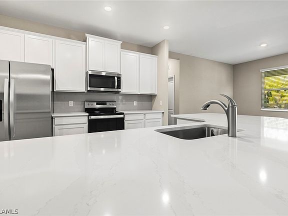 The Key West plan is available in the gorgeous area of south Cape Coral. This new, one-story home features an open floor plan, 5 bedrooms and 2.5 bathrooms complete with unbelievable upgrades including energy-efficient Whirlpool® appliances, spacious quartz or granite countertops, 42” upper cabinets with crown molding, an undermount kitchen sink, Moen® faucets, a convenient outlet with USB charging capability and an attached three-car garage with a Wi-Fi-enabled garage door opener. The Key West consists of a master suite complete with a massive walk-in closet, 9’ tall ceilings, a large covered back patio and a breakfast bar and a walk-in pantry. Residents will enjoy convenient access to the best shopping, dining and entertainment around.