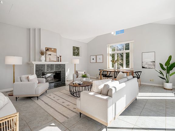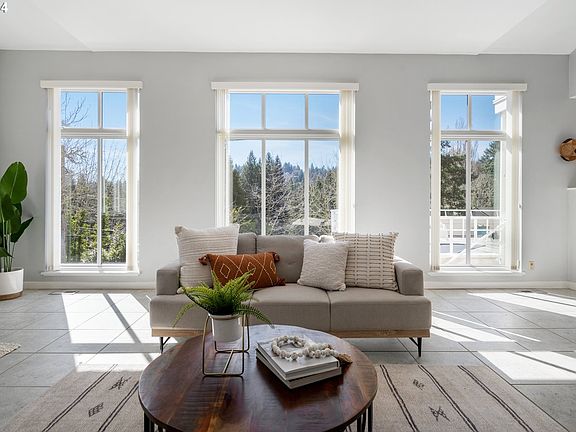 SUNNY PERCH IN THE CITY! Nestled in the vibrant Portland Heights neighborhood, this contemporary home offers a unique living experience that captures the essence of Portland's eclectic lifestyle. Perched above the street, on a quiet cul-de-sac, this home is away from the hustle and bustle, yet remains local to all that the city offers. Expansive deck with full southern exposure is perfect for al fresco dining or simply enjoying fresh Oregon air and stunning views. Discover a low-maintenance and landscaped yard, with blueberries, roses and ornamental trees that provide the ideal setting. Inside, soaring ceilings create a light and airy feeling. Adorned with large windows, this gathering space provides a panoramic view of the surrounding Marquam Natural Area and floods the home with warm natural light. The kitchen boasts retro charm and contemporary convenience, featuring gas and stainless steel appliances, and a center island. Imagine preparing meals while enjoying the scenic views that surround this unique property! Flexible living options abound with a main floor bedroom, bathroom, and laundry room. An additional room, with natural wood built-ins, could be used as a den or office. Upstairs showcases a second bedroom, large bathroom flooded with light, and the primary bedroom with vaulted ceilings and even more windows that let in the natural beauty of the PNW. Don't worry about storage with the double car garage and extra work space conveniently tucked under the home. Conveniently located above downtown Portland, this home offers easy access to the city's vibrant cultural scene, dining hotspots on 23rd, and recreational activities of Forest Park, Council Crest, and the Marquam trail system. Ainsworth ES, West Sylvan MS, and Lincoln High School. [Home Energy Score = 8. HES Report at https://rpt.greenbuildingregistry.com/hes/OR10190003]