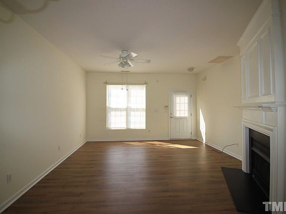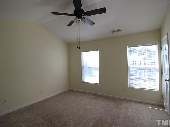 Cute townhome in convenient Raleigh location! Family with fireplace (new laminate flooring not pictured), vaulted ceilings in two bedrooms upstairs! Nice sized bedrooms with own private bathroom. Patio in the back. Small pets will be considered on a case by case basis. There is a non refundable pet fee