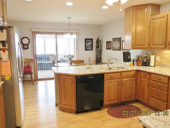Beautifully maintained, move in ready 3 BR home near golf course. Sought after location with view of farm field from the comfortable 3 season room. The seller has made many improvements to this home: furnace, water heater, carpet, LED bulbs, professionally painted, carpet blinds screens in 3 season room, new lights, granite counter new sink underlights in kitchen. This home also features a radon mitigation system, ramp in garage, dining room, large deck, main floor laundry, master bath, plenty of storage in basement, with possible 4th bedroom. So many wonderful features to this nicely decorated and landscaped home. Come see for yourself!