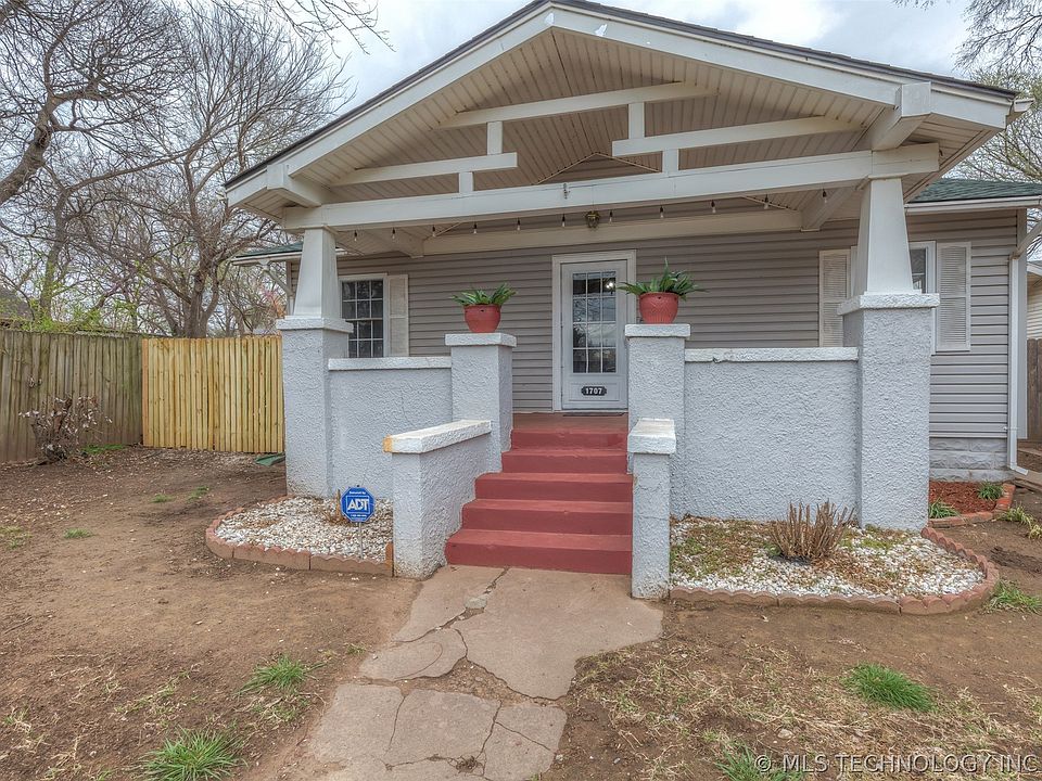 A cute bungalow in an even cuter neighborhood close to the historic Owen Park. Take a seat on the lovely front porch and picture yourself living in this home with so much character. Minutes from downtown Tulsa. Close to major highways and tucked in your own quiet area with surrounding adorable homes. Roof two years old, two extra buildings (one with electric), “office” with custom cabinets c/b 2nd bedroom (no closet). Alley access in back, and room to store a boat or camper.