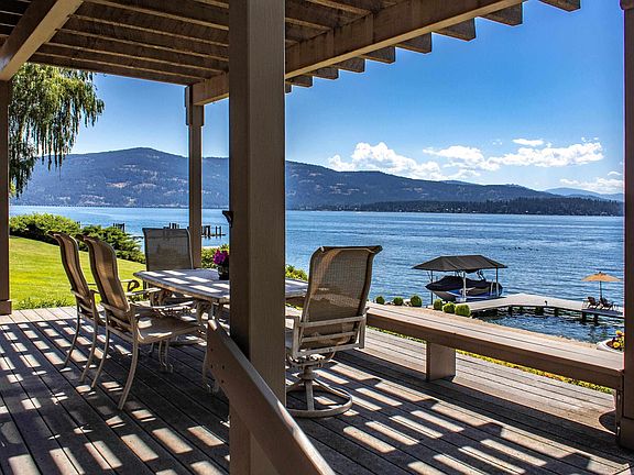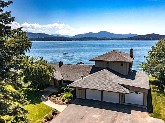 Rarely offered lake home in Sandpoint city limits on almost an acre with level lawn to the edge of your private beach, 140 feet of frontage, private dock with boat lift and stunning views. Arrive and unwind, prepare meals in the central kitchen with granite counters, large island and pantry. Fireplaces in both the living and family room and spaces that flow to patios and porches allow for intimate gatherings or larger-scale entertainment. Main floor studio/efficiency suite has separate entry at the covered porch overlooking the water. Spacious second-floor master suite is designed for complete privacy and boasts commanding vistas. Four-car garage provides ample storage. The home was updated and remodeled by expert local builder, still in keeping with its original clean lines and honest design. No HOA or CC&Rs, vacation rentals are allowed. Furnishings may be negotiated. Nearby bike path takes you to town less than a mile away. So convenient to restaurants, shops and Schweitzer Mountain for the full resort-town experience.