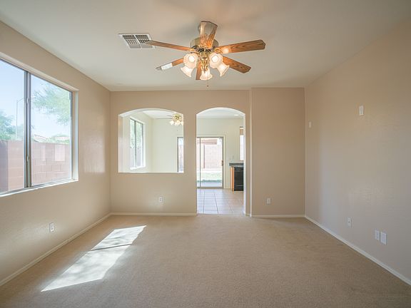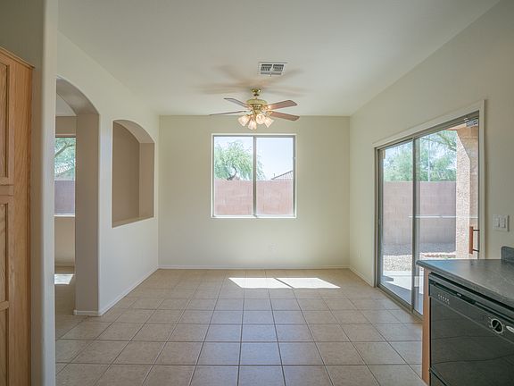Beautiful, low-maintenance desert landscaping and a front porch with a sitting area provides plenty of curb appeal to this corner lot home! Upon entry, pass through the living room to the eat-in kitchen with sliding glass doors leading to the covered patio and backyard. Head down the hallway to find the bedrooms and the Master suite, equipped with a separate garden tub and shower, a private toilet room, and a walk-in closet. Perks include an RV gate and an indoor laundry with built-in cabinets! Located a mile from a Safeway store. Also near parks, golfing, library, trails at White Tank Mountain, and SR-303 access. All Opendoor homes come with a 30-day satisfaction guarantee and one-year premium warranty. Terms and conditions apply. Open House: Mon-Sun, 6am-9pm