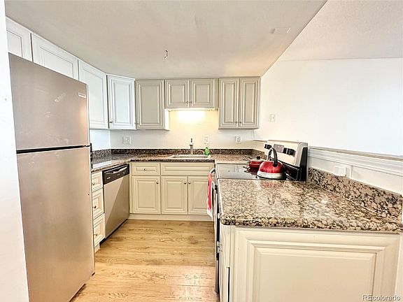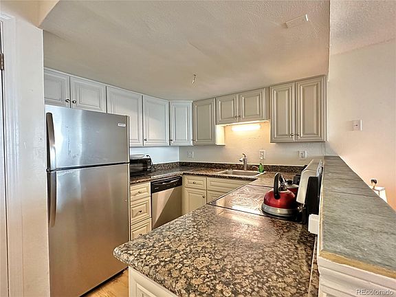 Welcome home to your 2 bed/1 bath condo, close to everything! Highlights include the enclosed patio, wood burning fireplace, stackable washer/dryer, and an assigned parking spot just in front of the building. The enclosed patio is perfect for morning coffee, the evening breeze, and containing small humans or fur babies. The double sided fireplace can be used in the living room or primary bedroom. Nestled between Mountain View Park and a great retail area with public transit, you are only 2 miles from I-225 and City Center, 3 miles from I-70, 25 min from the airport, and 8 min from Buckley SFB.