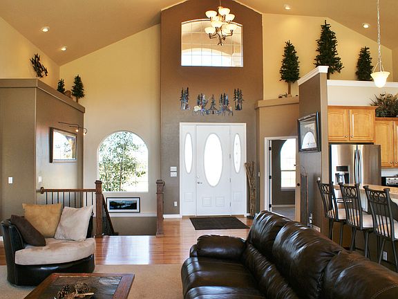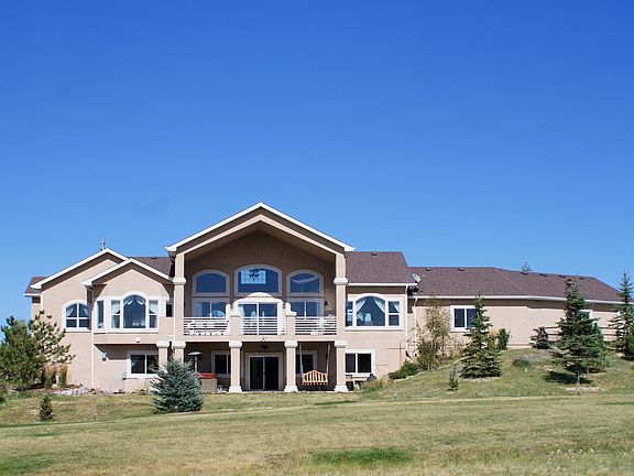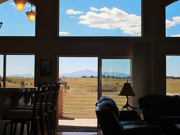 Relax And Unwind In This Beautiful 5500 Sq Ft Home With 5 Bedrooms And 6 Bathrooms And Nearly 1300 Sq Ft (4car+) Attached Garage. You Will Be Greeted At The Front Door With Stunning Peak Views From The Wall Of Windows. The Main Level Is Very Open With A Spacious Great Room With Attached Kitchen, Nook, Formal Dining Room And Den. Walk-Out Onto The Covered Spacious Composite Deck To Enjoy The Serenity Of Your 5 Acres. The Deck Is Also Accessible Via The Master Retreat Which Has An En-Suite Bathroom With Dual Sided Fireplace To Relax In Your Jetted Tub. Additionally There Is A Dressing Area With A Wall Of Mirrors And Large His/Her Closets. The Main Level Also Has An Additional 2 Bedrooms With Jack/Jill Bathroom And An Additional Bath And Large Laundry/Mud Room. The Lower Level Has 2 Additional Jr. Suites Each With Private En-Suite Baths, A Large Theater Room With Attached Bar, Exercise Room, 3/4 Bathroom With Area For Future Sauna, Second Laundry Room, Kids Playroom/Future Wine Cellar, And A Spacious Area For A Rec Room With Plumbing For A Wet Bar. Walk Out To The Covered Patio To The Large Hot Tub And Again Enjoy The Views Of Pikes Peak. In The Backyard There Is Plenty Of Room To Expand Or Compete On The 5000 Sq Ft Soccer/Football Grass Field. Additionally there is an oversized 4 car garage, dog run, underground sprinklers and drip system, large walk-in closets in every bedroom, heated floors in all basement and master bathrooms, 7 person hot tub, and some of the best sunrise/sunsets around! *Owner is a licensed Real Estate Agent in Colorado.