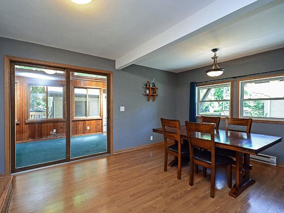 Very nice rambler on a great lot. There is an attached garage and a heated detached garage. This home has a main floor family room and also a lower level family room. On the main floor there is a nice sized eat in kitchen and a separate dining area just off the three season porch. Seller will pay off assessment